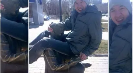 Напомним, как сообщалось ранее, мужчина забрался на статую, расположенную в центре города, напротив редакции местной газеты, и сделал оскорбительную фотографию. Монумент посвящен читателю - ценителю труда журналистов. Он представляет собой статую мужчины, сидящего на скамейке и держащего книгу. Именно на книгу и уселся парень.