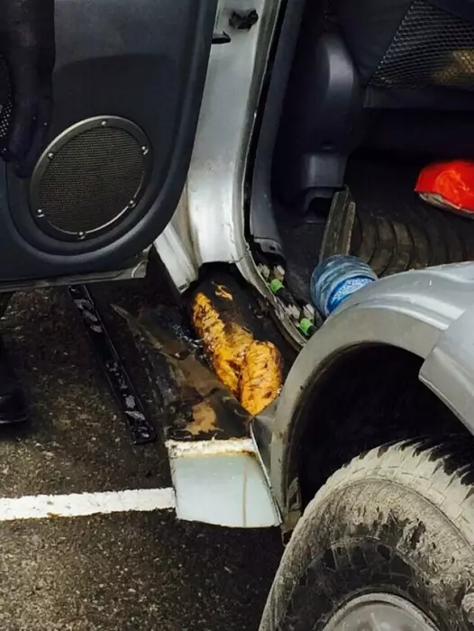 Крупная партия наркотиков была обнаружена в порогах автомобиля наркокурьеров Toyota RAV4. Подозрение вызвала свежая шпаклевка. При тщательном досмотре обнаружено белое порошкообразное вещество со специфическим запахом.