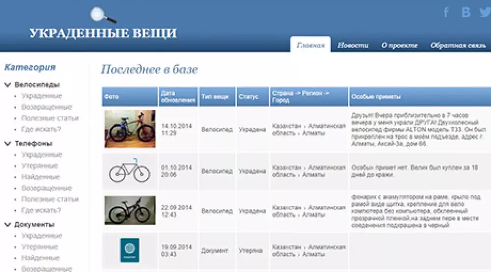 Также на сайте можно разместить информацию с фотографией о похищенном мобильном телефоне, велосипеде или документе. По словам автора, новые рубрики появятся при наличии спроса от пользователей.
