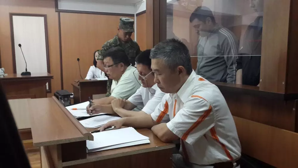 Начался суд по делу об убийстве девушки в Алматы Адвокаты и обвиняемые в зале суда. ©Роза Есенкулова