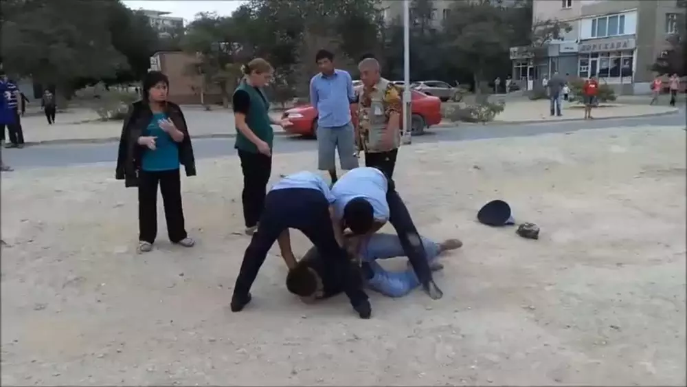 Одному из пользователей интернет-издания "Лада" удалось стать очевидцем задержания полицейскими Актау некоего гражданина. Инцидент произошел вечером 7 сентября в 11-м микрорайоне. На кадрах видно, как молодой мужчина отчаянно сопротивляется попыткам полицейского скрутить руки. Несколько женщин при этом пытаются помочь и оттаскивают блюстителей порядка. В конце концов, гражданин все же оказывается в наручниках. Одна из свидетельниц происшествия рассказала, что компания из трех парней выпивала на улице. Затем подъехал наряд полицейских. Двое парней сумели убежать, третий не успел.