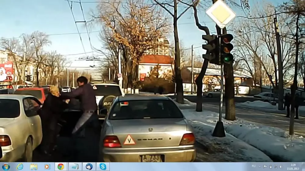 Полицейские Алматы нашли пенсионеров, которых несколько дней тому назад избил прямо в центре мегаполиса разъяренный водитель. Об этом в понедельник передал телеканал КТК. Пострадавшие уже дали показания. Интересно, что после инцидента семейная пара даже не написала заявление в правоохранительные органы. Между тем, пресс-секретарь департамента внутренних дел Алматы Салтанат Азирбек сообщила порталу BNews.kz, что случайный свидетель, разместивший кадры избиения пенсионеров в интернет, неправильно указал номер владельца автомобиля в тексте к видео. "Этот номер (A856DVP - Прим. Tengrinews.kz) принадлежит автомобилю марки Camry. По предварительной информации известно, что хулиган передвигался на автомобиле Ford Focus, это видно и на записи видеорегистратора", - заявила пресс-секретарь. По ее словам, полицейские ищут преступника "по своим каналам и намерены найти в ближайшее время". Напомним, судя по размещенному в YouTube видеоролику, пожилых мужа и жену избили 10 января 2013 года на пересечении улиц Ауэзова - Шевченко. По неизвестной причине, молодой человек набросился на старика, который сидел в своей машине. Затем нанес несколько ударов его супруге, пытавшейся защитить мужа. После этого хулиган преспокойно уехал. Все происходило средь бела дня, но никто из проезжающих водителей не остановил драку.