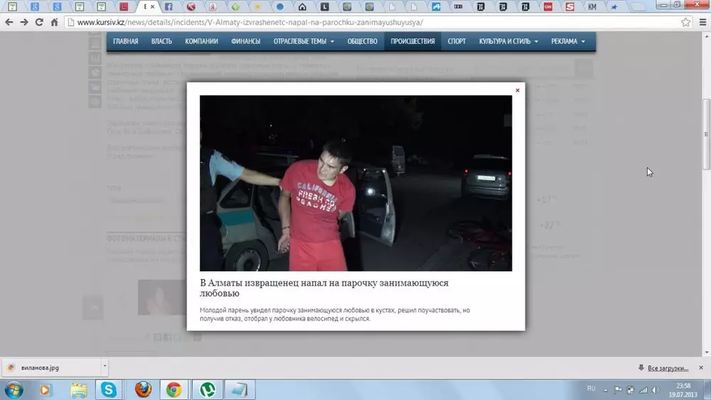 В Алматы на пересечении улиц Жандосова и Айманова парня и девушку обокрали, когда они занимались любовью в кустах, пишет "Курсивъ". Подвыпивший мужчина проходил мимо и услышал в густой растительности страстные стоны. Недолго думая, он проник в любовное гнездышко, а затем предложил парочке стать третьим. Когда молодые люди ответили отказом, извращенец избил парня, отобрал у него велосипед и скрылся. Пострадавший тут же обратился в полицию. Налетчика удалось задержать на пересечении улиц Толе би и Байзакова. Он раскатывал на ворованном двухколесном транспортном средстве.