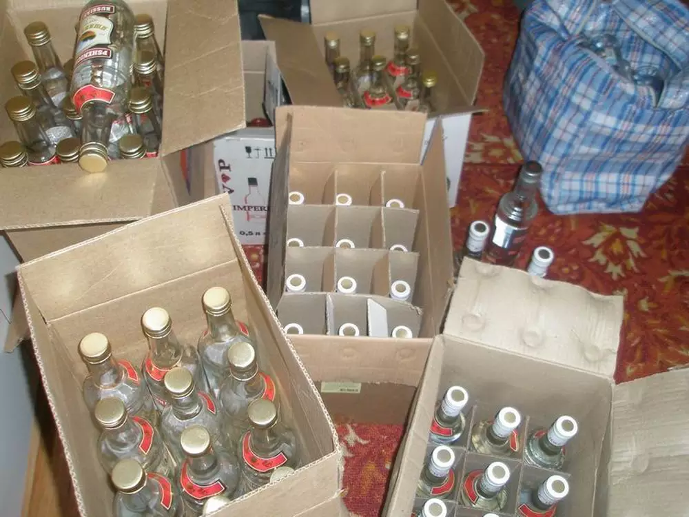 В микрорайоне "Улжан" в кузове автомобиля местного жителя нашли 362 бутылки винно-водочных изделий. Кроме того, изъяты акцизные марки, этикетки, шланг с фильтрующим устройством, лейка и 10 литров спирта.