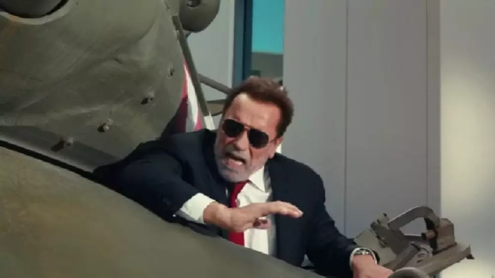 В презентационном видеоролике, который на своей странице опубликовал Netflix, Арнольд подъезжает к офису компании на танке и произносит пафосную речь: