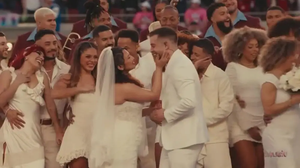 Bad Bunny, Lady Gaga и настоящая свадьба: чем запомнился Супербоул-2026 Кадр из видео