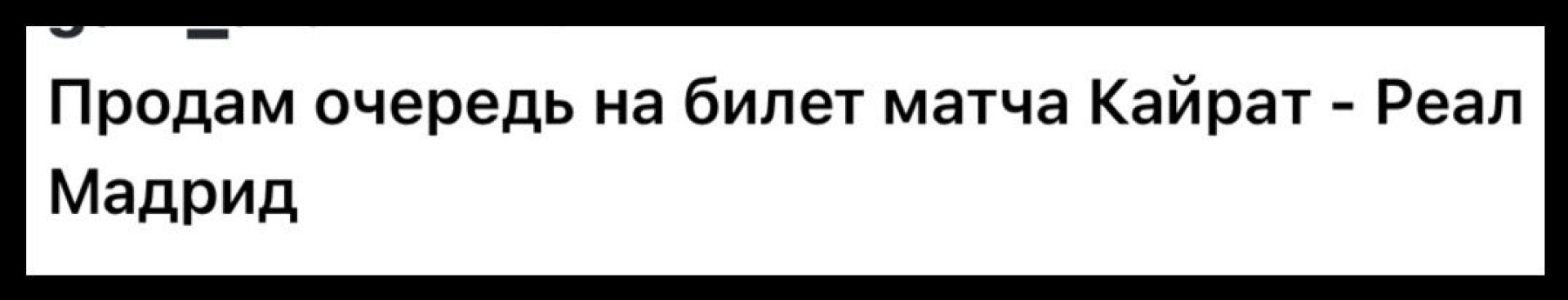 Сегодня в 17:00 стартовала продажа билетов на матч Лиги чемпионов "Кайрат" — "Реал Мадрид". Мы тоже решили попробовать удачу и пройти весь процесс покупки, чтобы проверить, насколько реально было заполучить заветные билеты, передает Tengri Life.