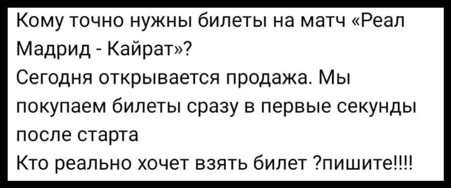 За несколько часов до старта продаж с официальным объявлением к болельщикам обратился казахстанский клуб. Представители напомнили, что билеты, купленные у третьих лиц или на неофициальных каналах, будут аннулированы и попасть на стадион с ними не получится.