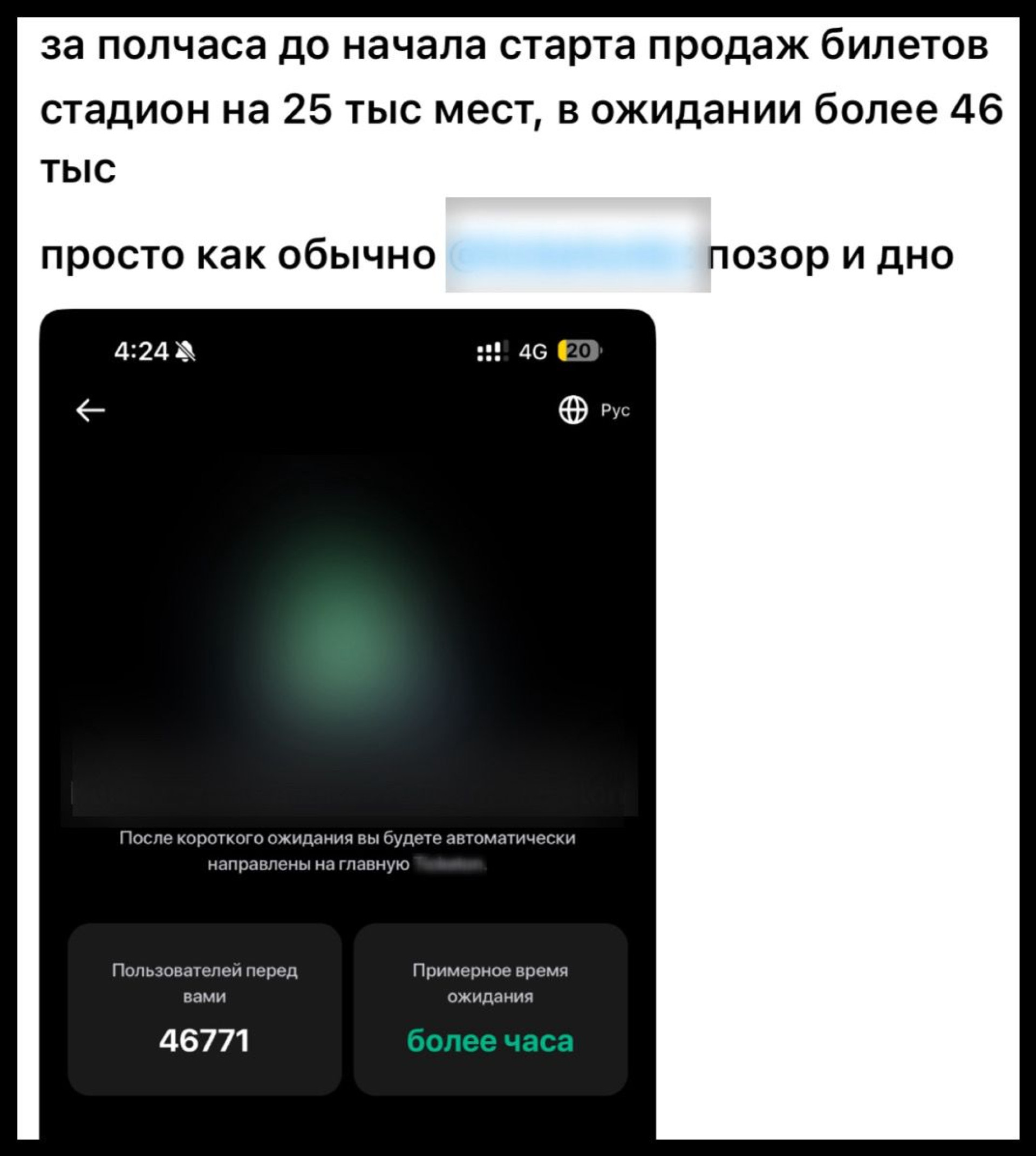 Некоторые болельщики делятся скриншотами, где их место в виртуальной очереди доходит до 140 тысяч. Это значит, что шансы получить билет становятся теоретически минимальными.