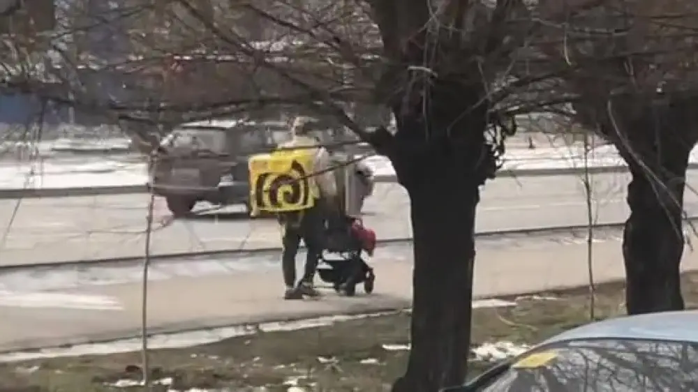 Ролик опубликован в TikTok-аккаунте пользователя bainemetovv02. Автор видео запечатлел эпизод из жизни: женщина спешит по делам, неся на спине большой рюкзак курьера и толкая перед собой коляску с ребенком. Она не оглядывается по сторонам и даже не заметила, что ее снимают.