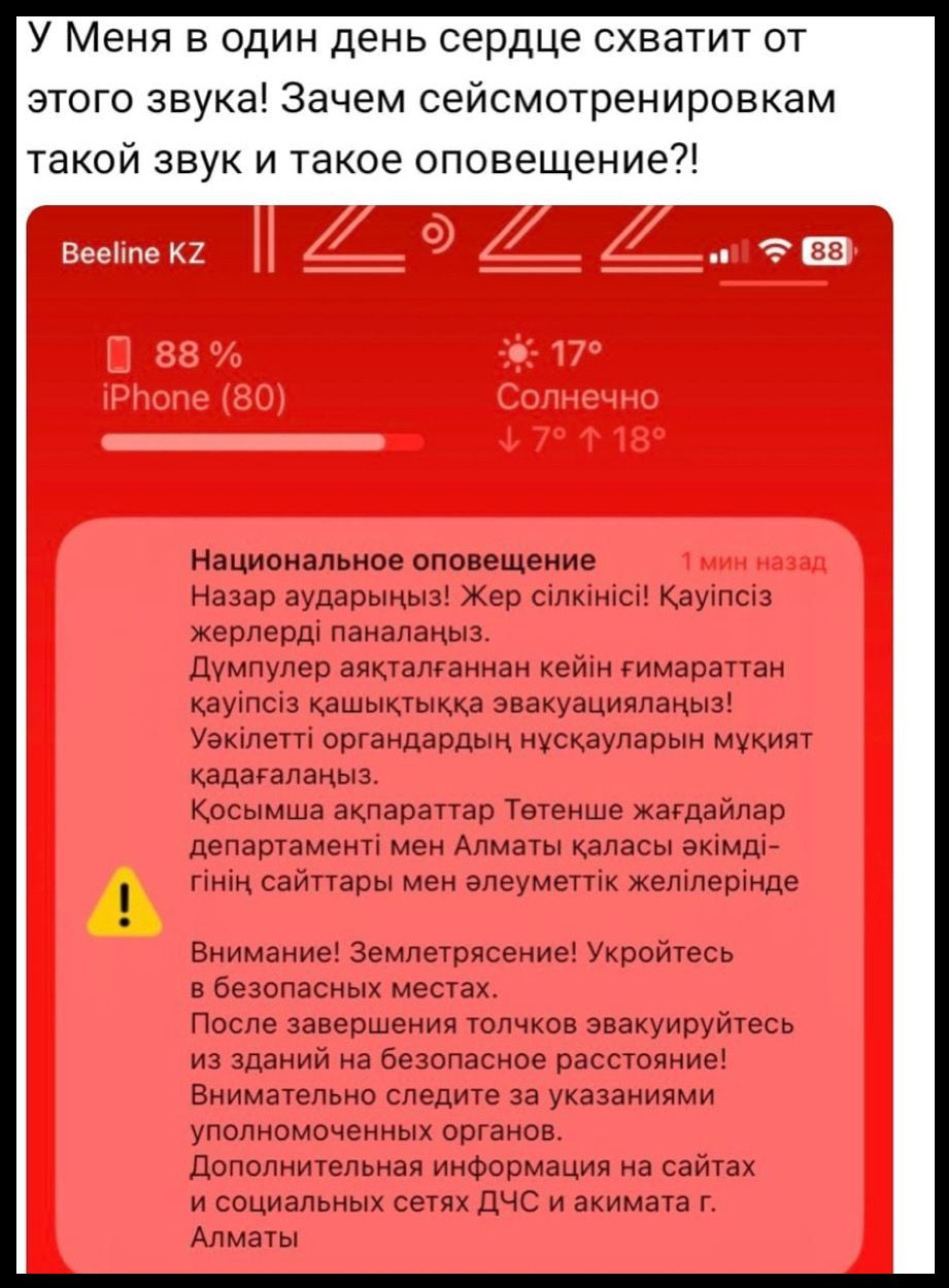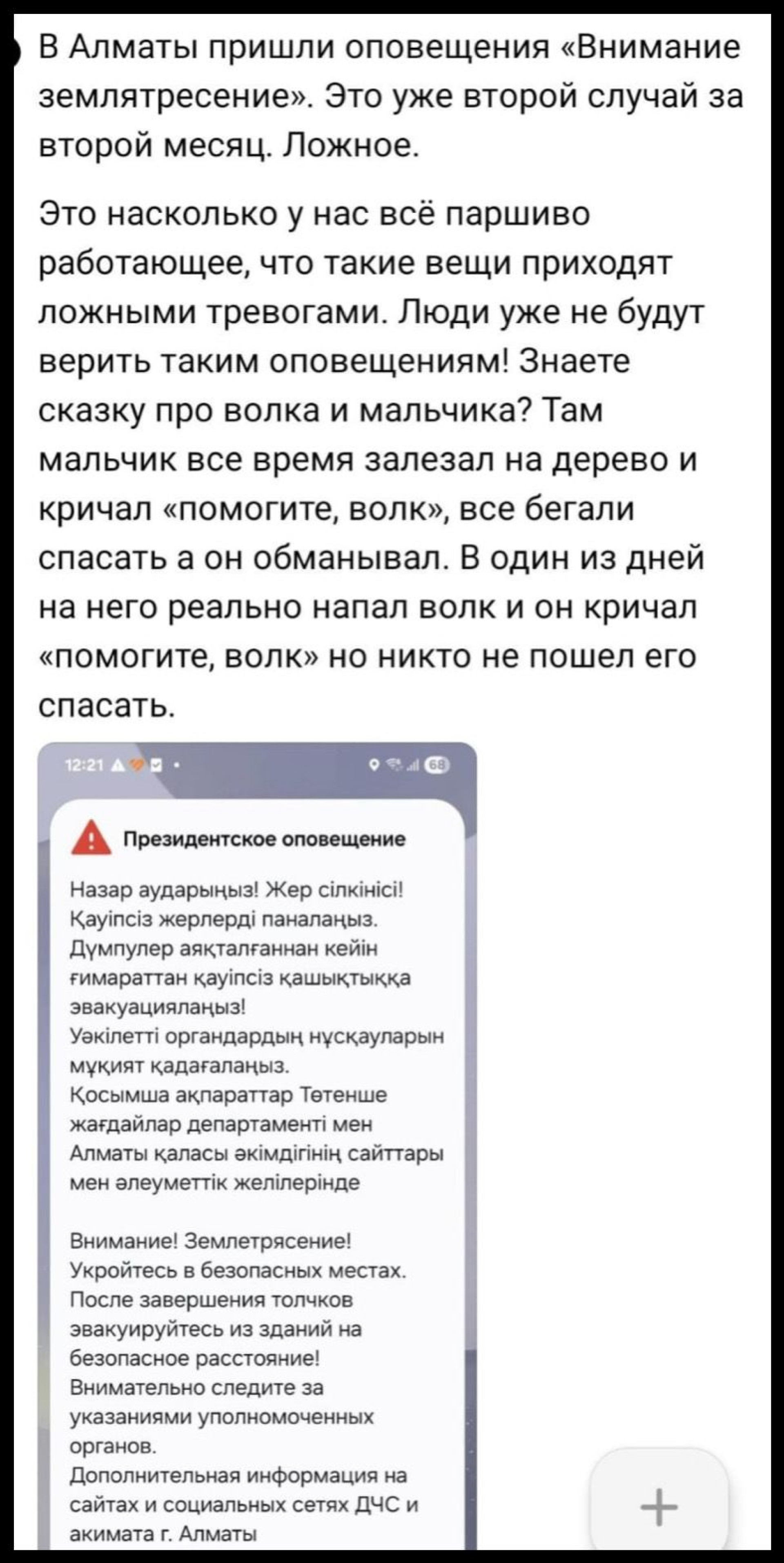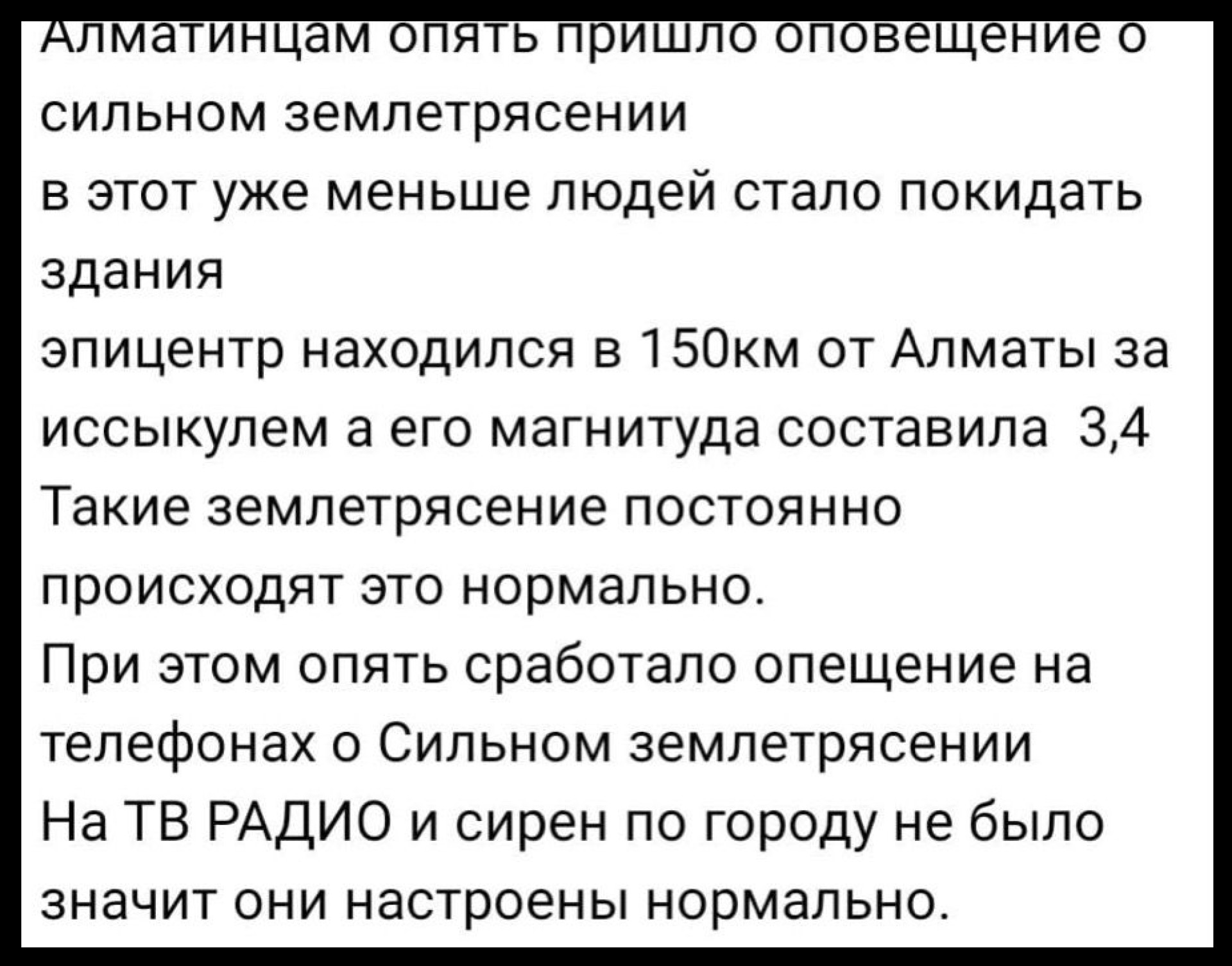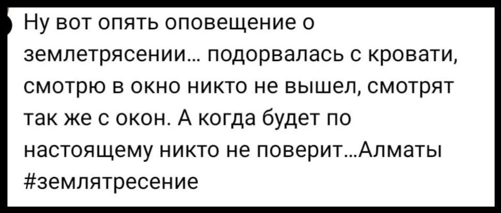 Некоторые казахстанцы отмечают, что при настоящем землетрясении люди могут не обратить внимания на такие оповещения.
