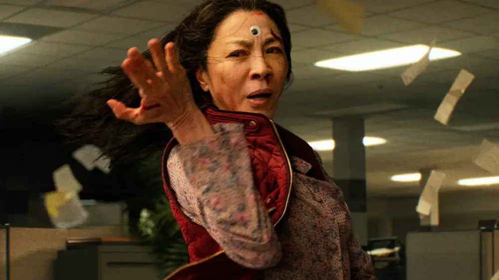 "Все везде и сразу" - оригинальная, душевная и насыщенная фантастика про замученную владелицу прачечной (Мишель Йео), которой приходится путешествовать по параллельным вселенным, чтобы спасти свой и другие миры от разрушения и найти общий язык с дочкой.