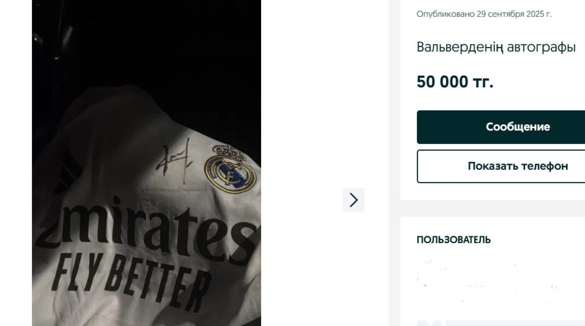 Один из фанатов предлагает автограф уругвайского хавбека Федерико Вальверде. Стоимость — 50 тысяч тенге.