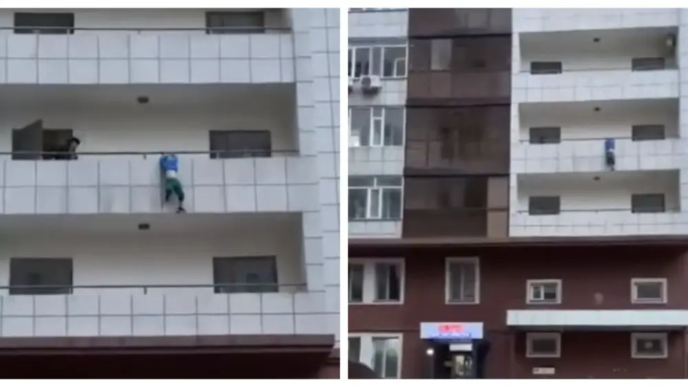 Акан играл во дворе, когда к нему обратились дети. Они рассказали, что заметили мальчика, который висел, держась за перила балкона четвертого этажа.