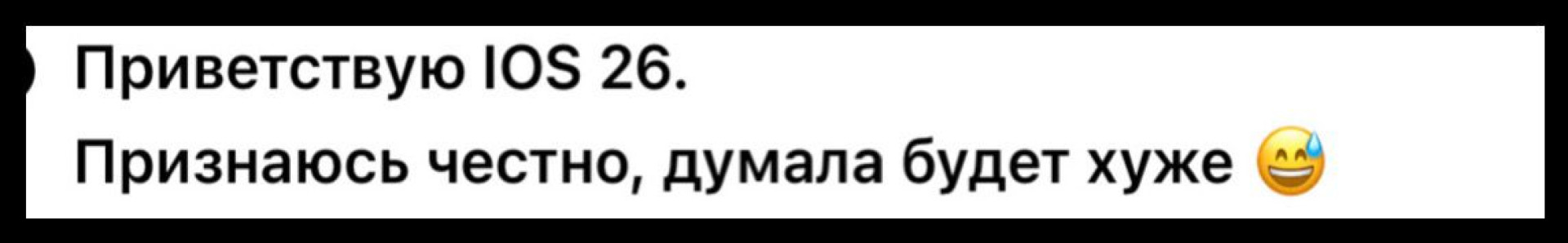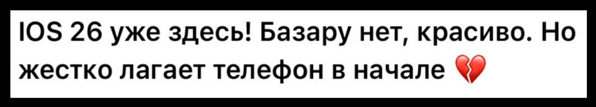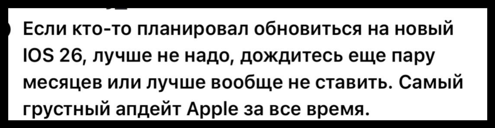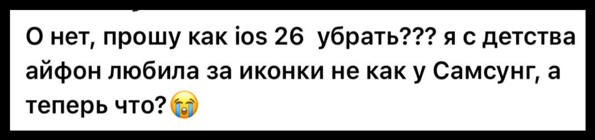 "Если кто-то планировал обновиться на новый IOS 26, лучше не надо, дождитесь еще пару месяцев или лучше вообще не ставить. Самый грустный апдейт Apple за все время", - написал пользователь Threadsю