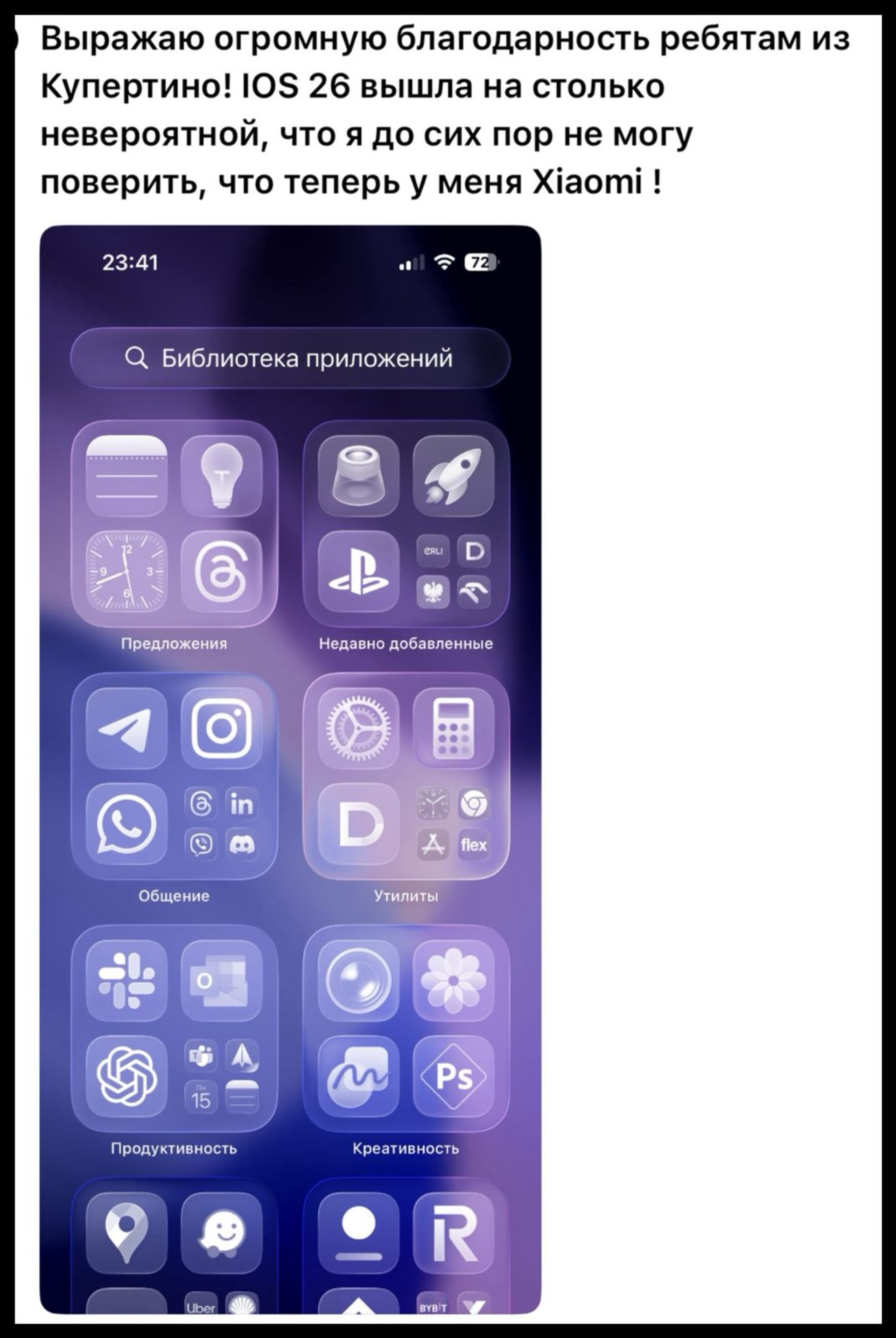 Обновление iOS 26, выпущенное Apple, активно обсуждается и критикуется в сети, подробнее рассказывает Tengri Life.