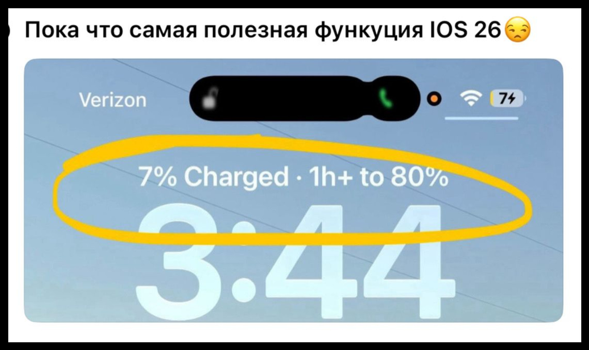 По словам комментаторов в сети, в iOS 26 появилась функция, которая показывает, сколько времени осталось до полной зарядки iPhone. Некоторые пользователи отметили, что полезно видеть и время до достижения 80 процентов заряда, и в соцсетях даже делились скриншотами с таким индикатором.