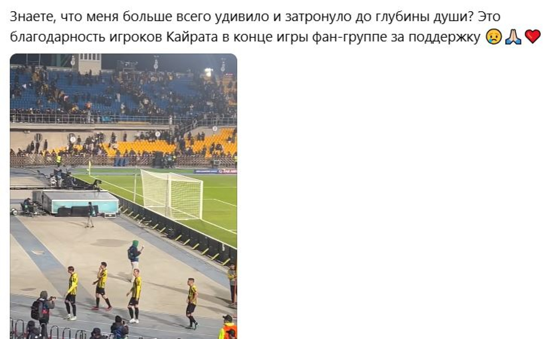 Многие отметили, что после финального свистка футболисты "Кайрата" подошли поблагодарить фанатов.