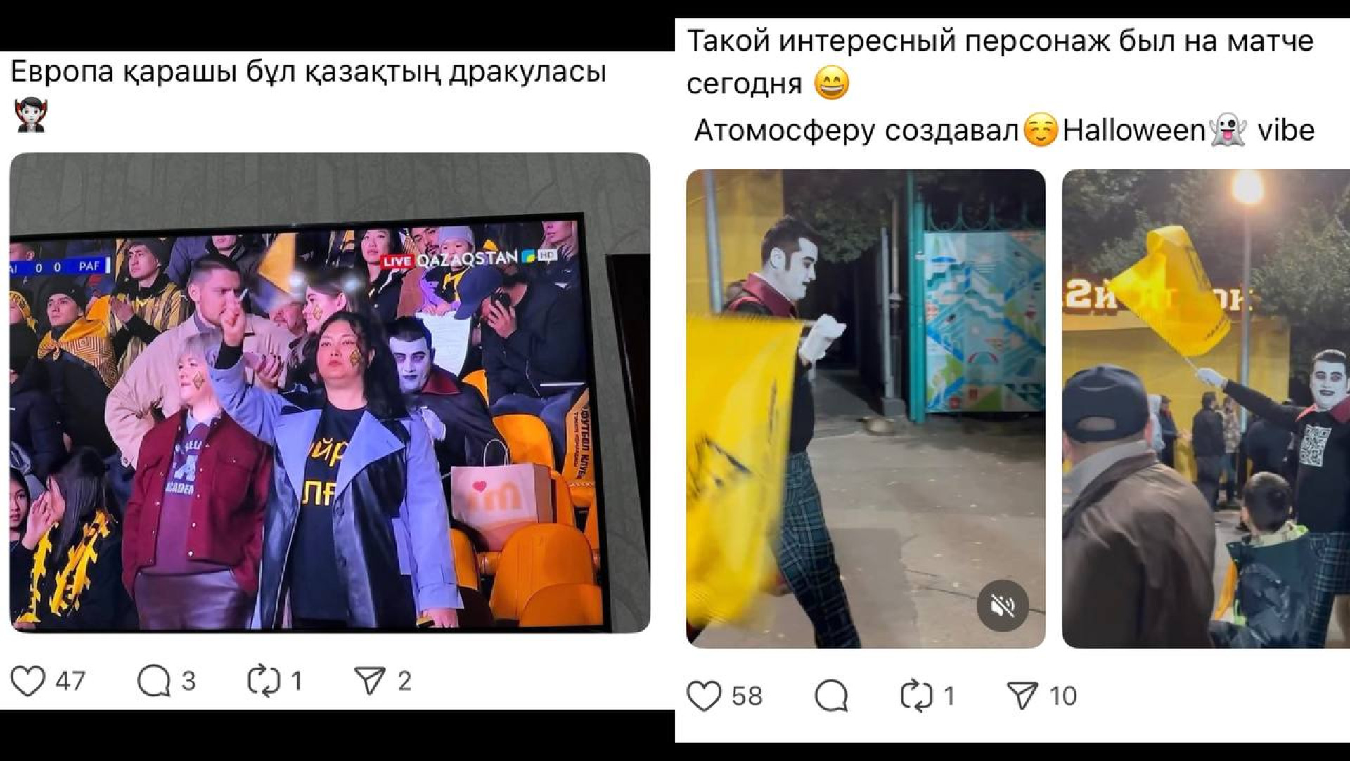 "Даже Дракула пришел поддержать "Кайрат", "Атмосферу создавал", — писали пользователи сети.