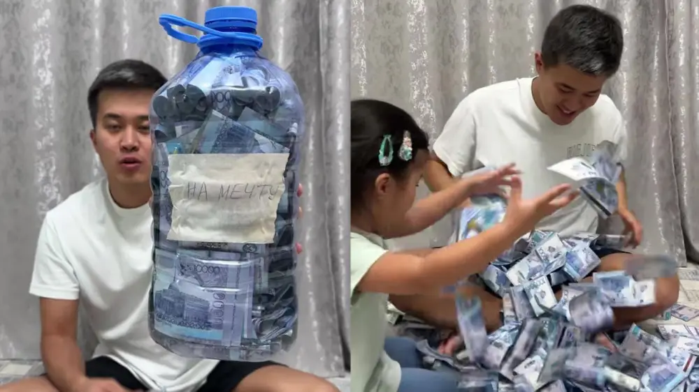 29-летний астачанин Куандык опубликовал у себя на странице в TikTok ролик, в котором рассказал подписчикам, что на протяжении довольно долгого времени копил в бутылке деньги, откладывая в нее купюры по 10 тысяч тенге. По его словам, копили супруги на мечту. Вскрывая бутылку, мужчина предположил, что им удалось собрать миллион шестьсот тысяч тенге. Однако цифра оказалась даже больше. Семья накопила 2 миллиона 470 тысяч тенге.