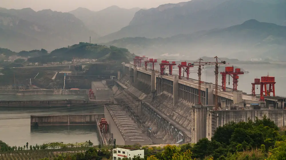 Возведение плотины ГЭС "Три ущелья" было закончено в 2012 году - она достигла длины 2335 метров и высоты 185 метров. Водохранилище наполнено 40 кубическими километрами воды, хранящимися на высоте 175 метров над уровнем моря, что придает ей серьезный вес и энергию.