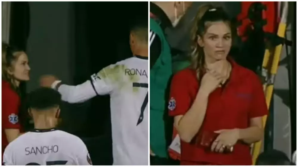 В перерыве матча между "Шерифом" и "Манчестер Юнайтед" португалец заходил в подтрибунное помещение стадиона, когда к нему подошла девушка, предположительно медработник, и попросила о фото.