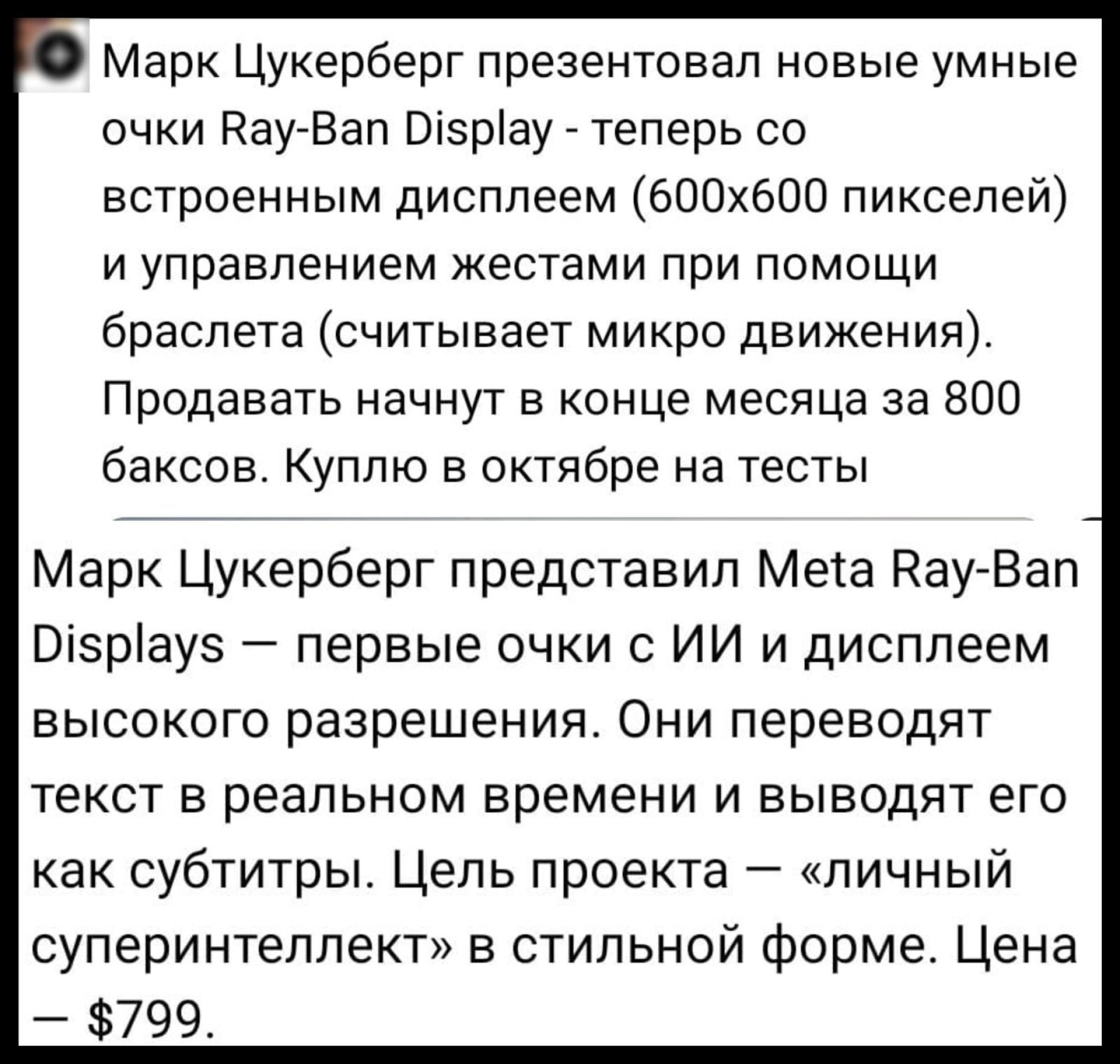 Он также поделился впечатлениями о Ray-Ban Meta Gen 2.