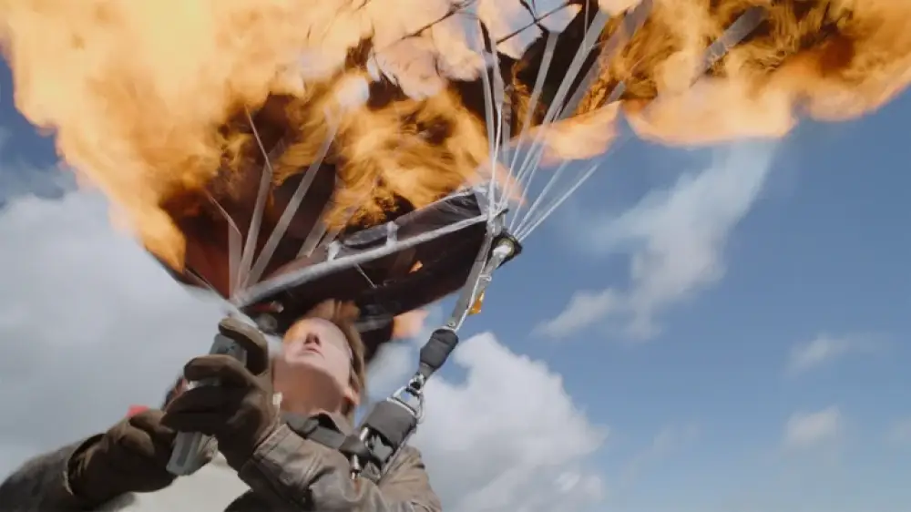 Самая известная и, возможно, самая рискованная кинозвезда мира выполнила этот прыжок целых 16 раз, прежде чем поджечь свой парашют в последней части франшизы "Финальная расплата".