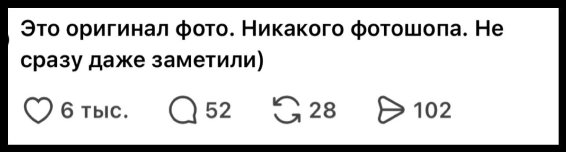 Фотографией поделилась пользовательница соцсети Threads. По словам автора, никакой обработки или монтажа при создании кадра не использовалось — снимок получился таким благодаря естественному свету и облакам.