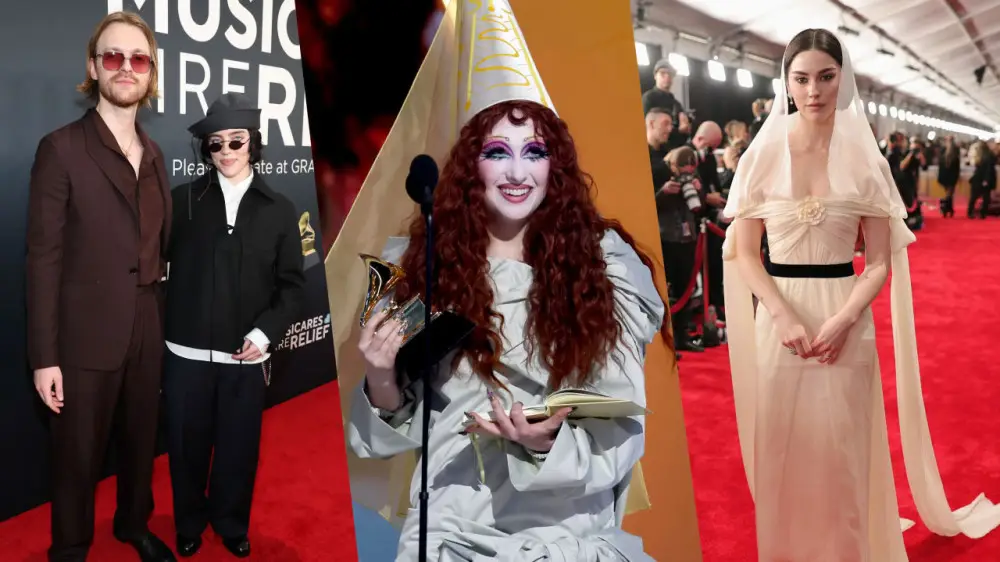 Певица Билли Айлиш появилась на красной дорожке в белой рубашке, крошечной шляпке с массивной серебряной цепью. Многие фанаты отметили, что образ слишком напоминает моду начала 2000-х.