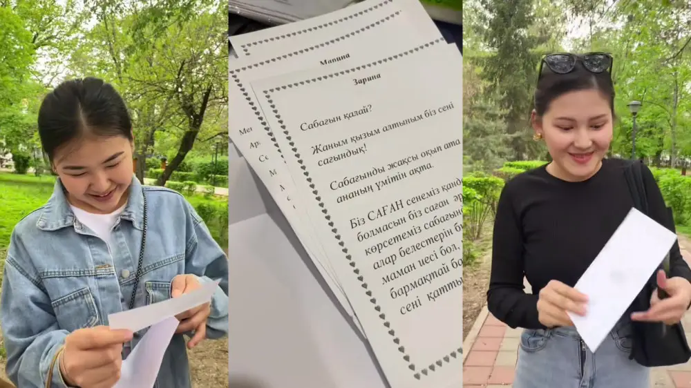 19-летняя Аяулым Мухитқызы опубликовала на своей странице в TikTok видео, которое привлекло внимание аудитории. Девушка рассказала, что решила подбодрить своих сокурсников и попросила родителей ребят отправить им теплые слова поддержки. На кадрах видно, как студенты открывают письма и не могут сдержать эмоций. Некоторые из них плачут, так их растрогали слова родителей.