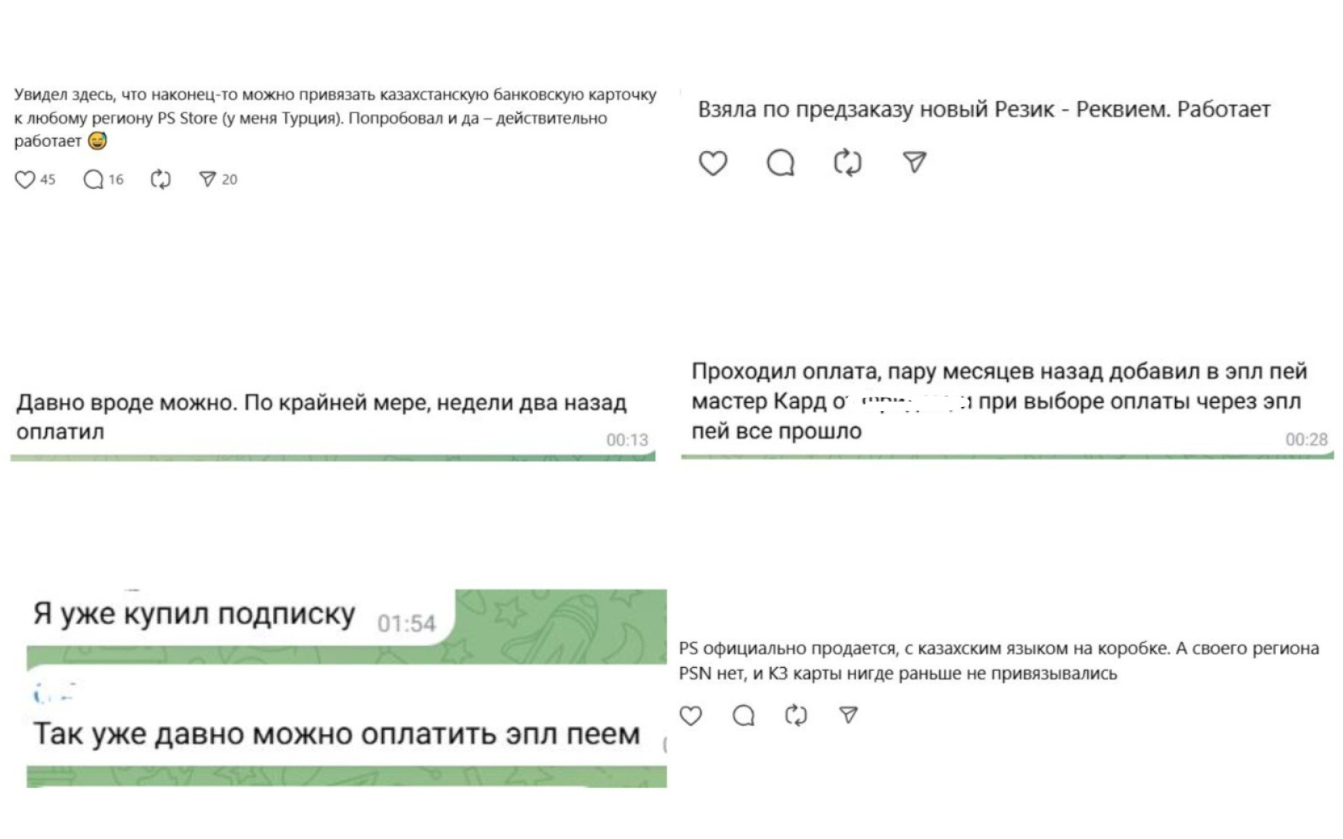 "Увидел, что наконец-то можно привязать казахстанскую банковскую карточку к любому региону PS Store. Попробовал, и да – действительно работает", "Только что попробовал. Получилось. Оплачивал через Турцию", "Можно покупать подарочные карты через наши банковские карты, правда, это дороже", — рассказали пользователи сети.