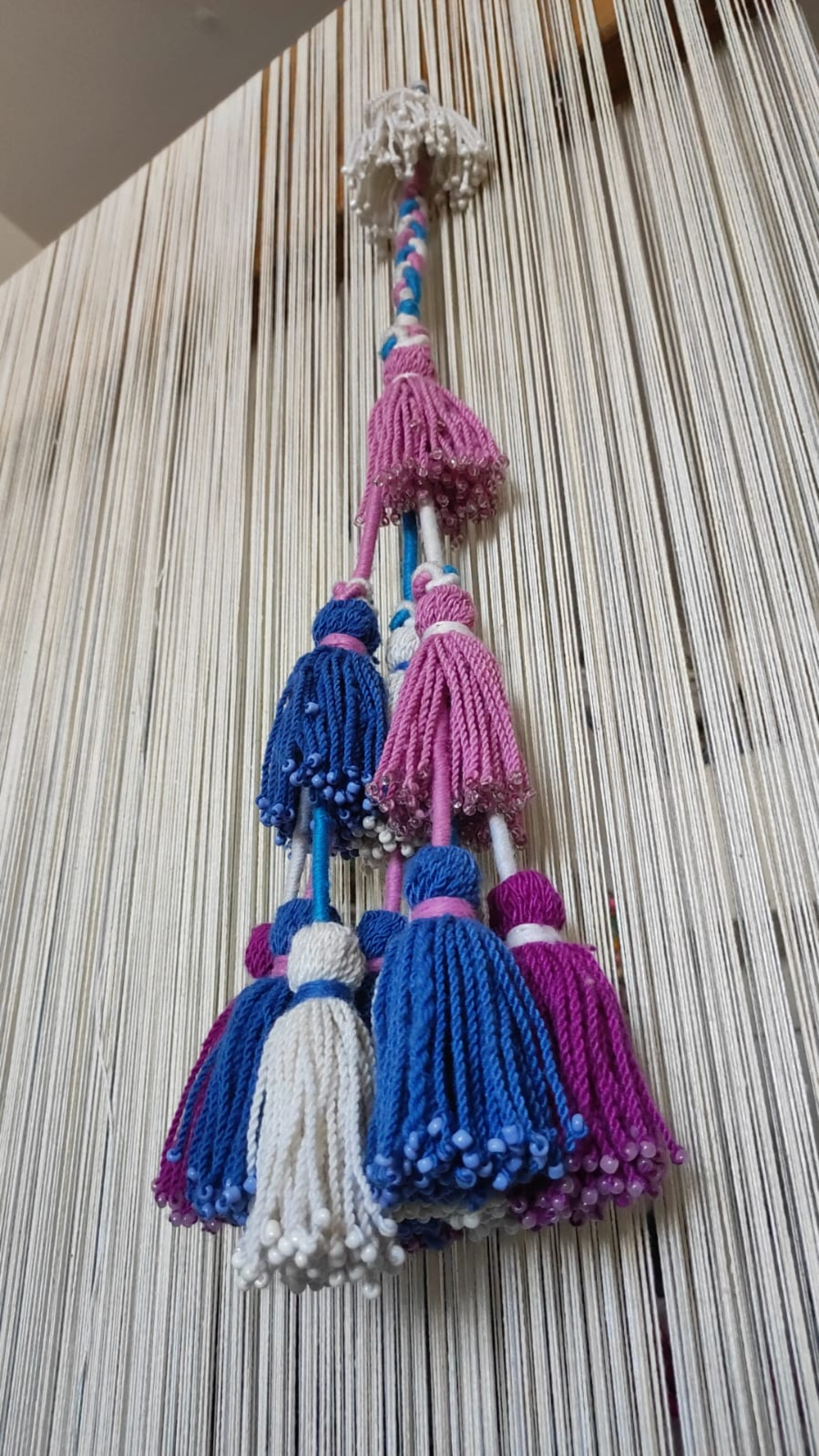 "Шашак — это оберег. Там тоже очень большой смысл заложен: от одной кисточки идёт к трём, от этих трёх уже к девяти. Это такая магия множественности. Как пожелание того, чтобы род не прерывался, был достаток, чтобы скот размножался хорошо", — отметила специалист.