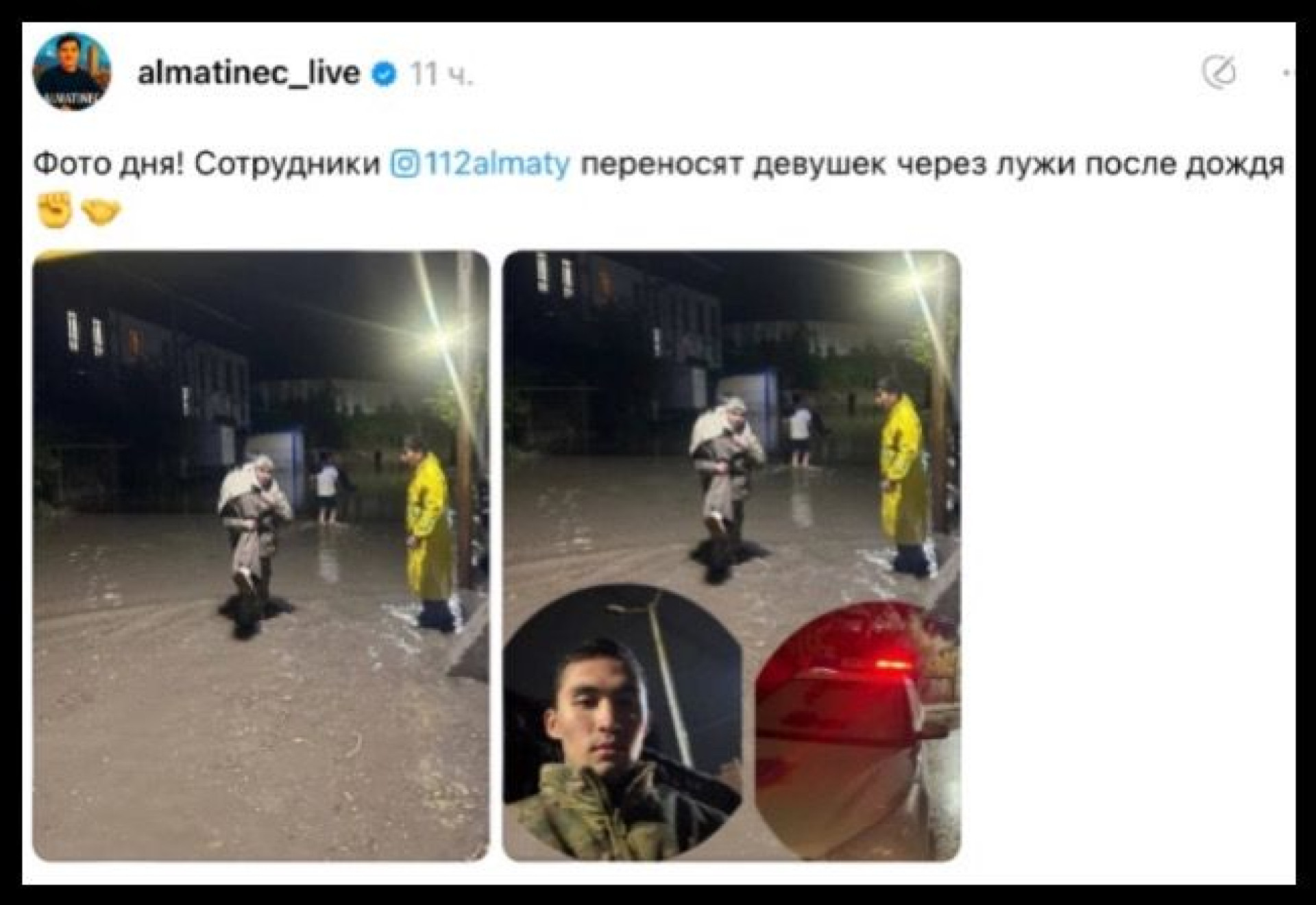 После сильного дождя в Алматы жители активно обсуждают поступки спасателей и проблемы городской инфраструктуры.