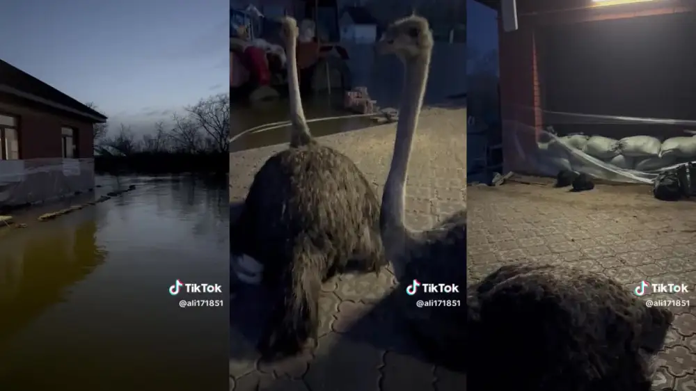 Каким образом два страуса оказались в затопленном регионе, нам пока выяснить не удалось. Однако комментаторы написали, что в Уральске есть страусиная ферма, поэтому экзотические птицы в городе их не удивляют. Что касается самого видео, то голос за кадром иронично подмечает, что сейчас они находятся в Венеции.