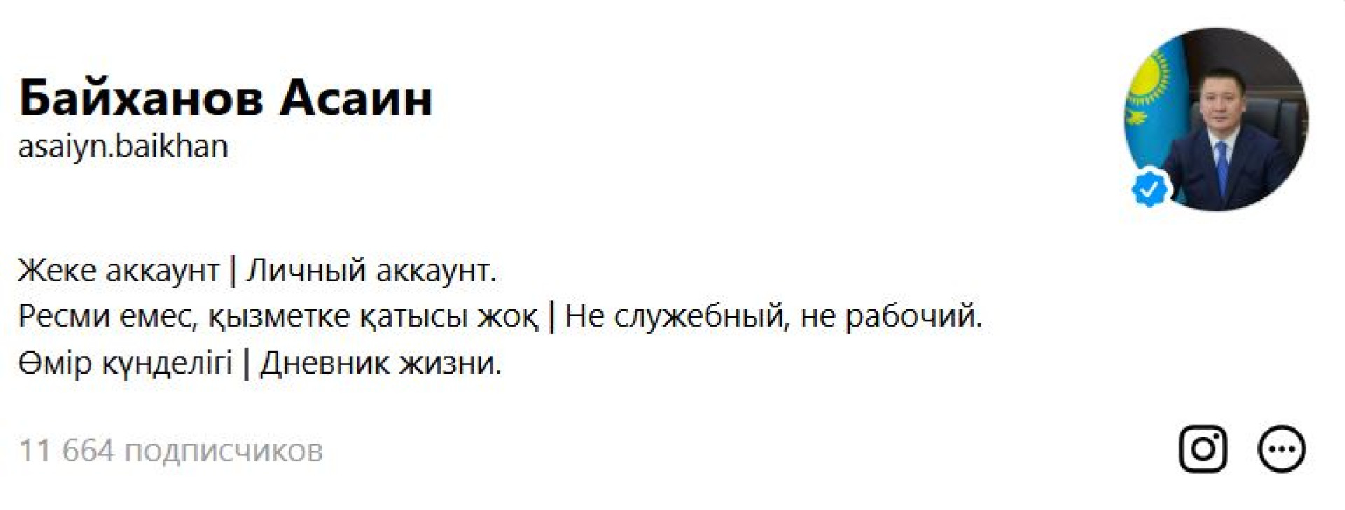 Байханов сразу уточнил, что его страница в Threads — личный аккаунт, где он делится частными моментами и не освещает рабочие вопросы. По его словам, все обращения, связанные с деятельностью акимата, он рассматривает на своей официальной странице в Instagram.