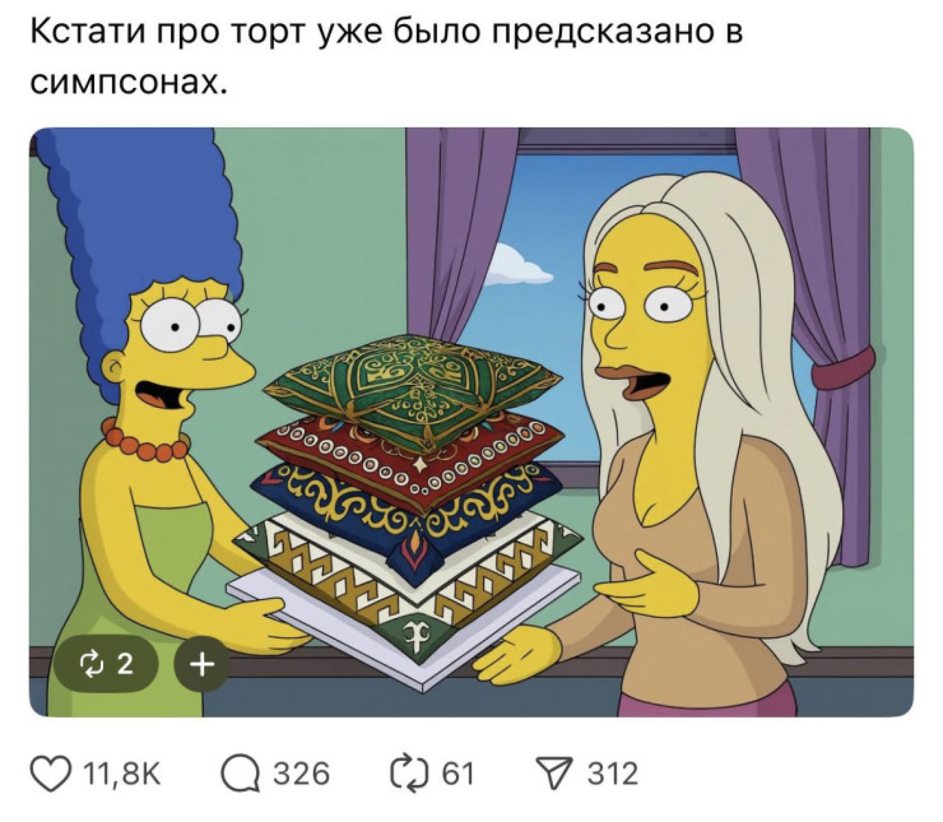История вызвала широкий резонанс в Казахстане и за его пределами, превратившись в мем. Пользователи начали спорить о цене торта, публиковать мемы и переводить 600 тысяч тенге в разные валюты: от японских иен до бразильских реалов. Один комментатор пошутил, что "зарабатывает только один торт в месяц".