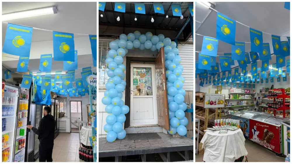 Всё началось с видео из небольшого продуктового магазина в Астане, которое неожиданно стало вирусным и разлетелось по соцсетям. Мини-маркет при одном из жилых комплексов оформили в патриотичном стиле: потолок заполнили голубые воздушные шары, в зале появились флаги Казахстана.