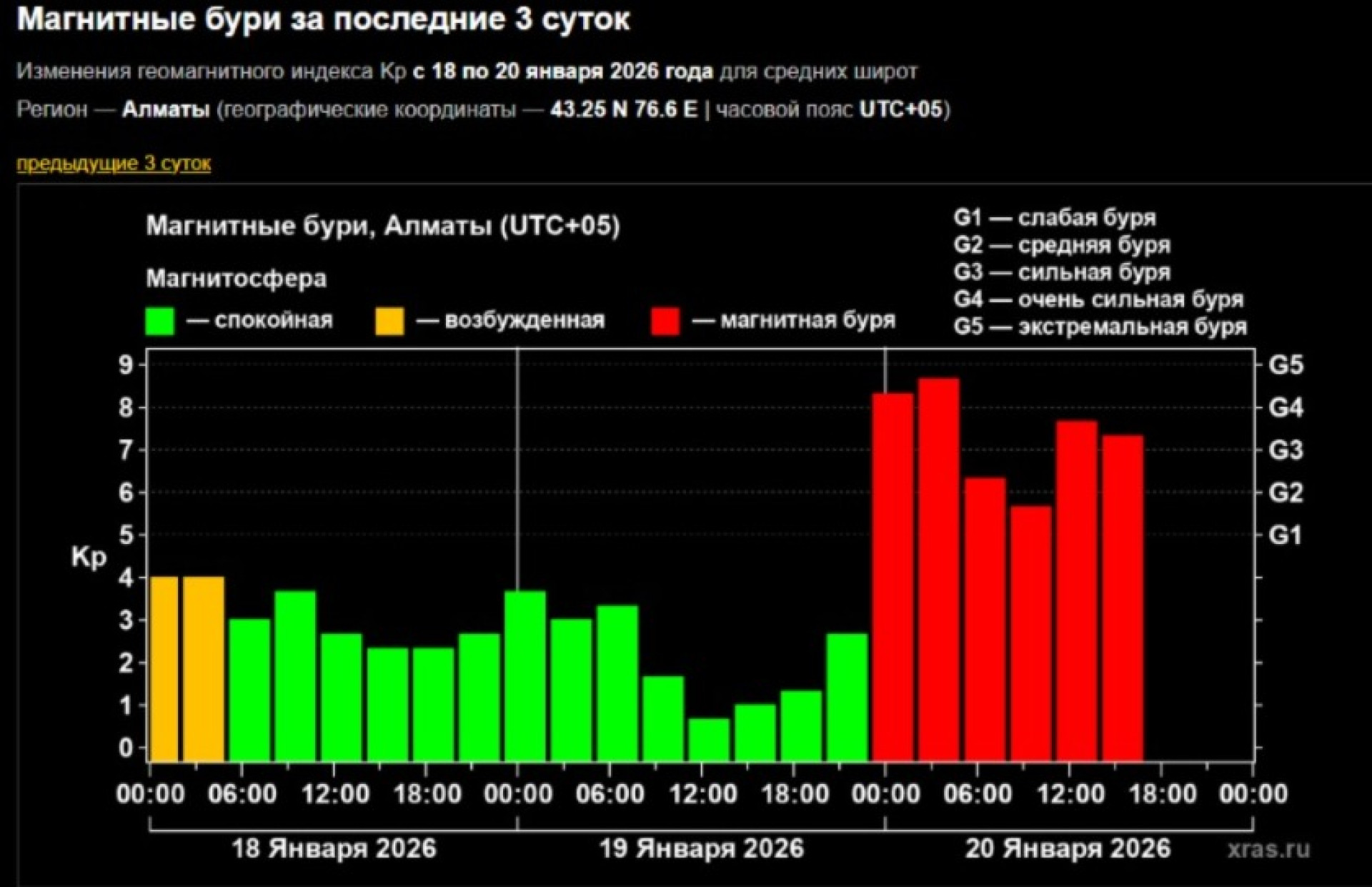 По данным специалистов, сейчас наблюдается повторный рост геомагнитных возмущений — это продолжение масштабного события, начавшегося ранее.