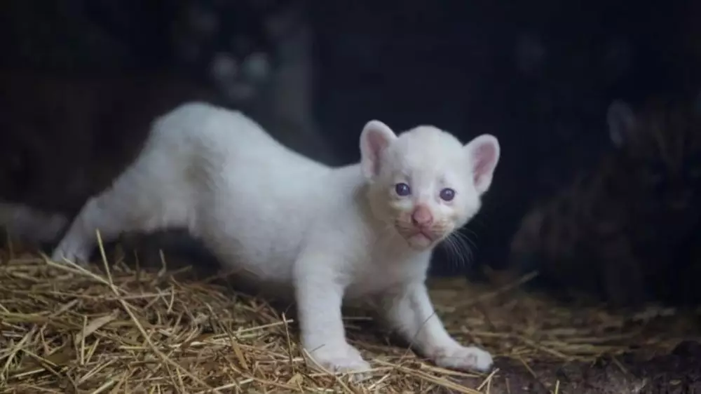 Белый детеныш здоров и хорошо кушает, рассказал ветеринар. Он добавил, что пумы-альбиносы очень чувствительны к солнечному свету и требуют внимательного ухода.