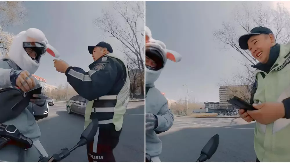 В Алматы полицейские остановили мотоциклиста в необычном головном уборе. Милый разговор засняли на видео, которое позднее завирусилось в сети: только на TikTok-странице автора за сутки ролик посмотрели 5,5 миллиона раз. Подробнее рассказывает Tengri Life.