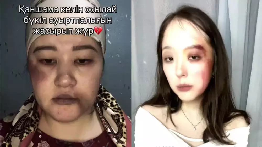 На фоне громкой новости о смерти 31-летней Салтанат Нукеновой в Казнете запустился челлендж, где авторы публикаций требуют "остановить насилие над женщинами". Девушки с макияжем, имитирующим следы от побоев, делятся своими историями в социальных сетях под хештегами: #меняйзакон, #стопнасилие, #немолчи, #ужесточинаказание.