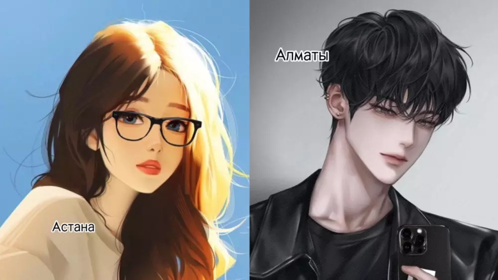 Автор решил изобразить персонажей городов, словно они герои фэнтези аниме. Вот так, к примеру, выглядят ученики воображаемого класса из Атырау, Актау и Актобе. Автор представил себе их богатыми ребятами с айфонами, которые всегда ходят вместе. Такой романтичной девушкой представили Астану. В образе прекрасной леди автор решил изобразить и Кокшетау.