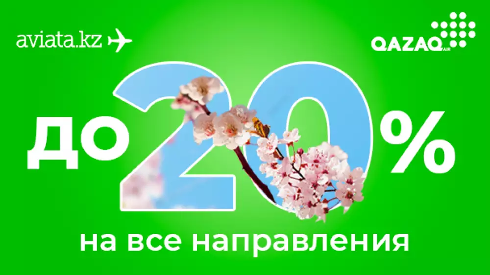 Авиакомпания Qazaq Air объявила о скидке в 20 процентов на билеты при покупке через сервис по продаже авиа и ж/д билетов Aviata.kz.