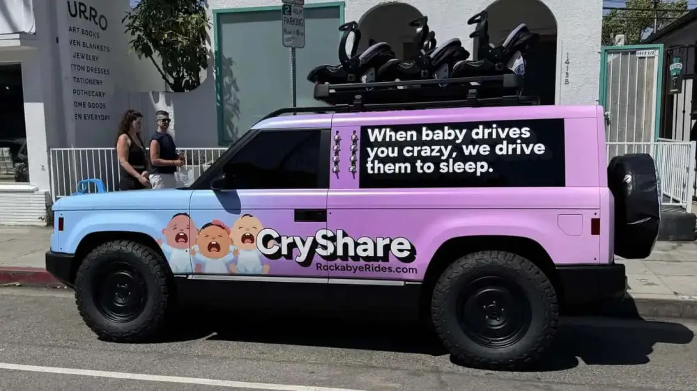 На улицах были обнаружены прототипы грузовиков и внедорожников, покрытые камуфляжем для сохранения секретности дизайна. Один был украшен сатирическими логотипами "CryShare", в комплекте с соской на капоте и автокреслами на багажнике на крыше. Слоган на задней части гласит: "Когда ребенок сводит вас с ума, мы отвозим его спать".