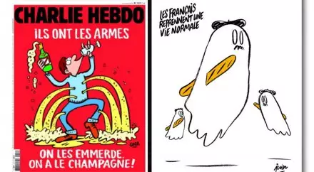 Ранее редакция журнала выпустила карикатуру с изображением привидений с усами. В руках у них были багеты, а на головах береты. "Французы возвращаются к нормальной жизни", - говорилось в подписи к публикации.