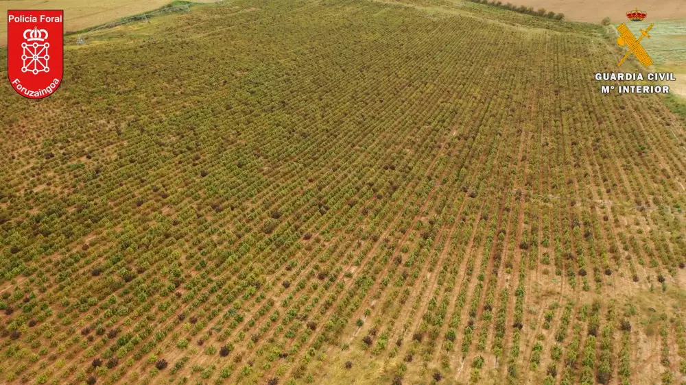 Расположенная в сельской местности северного региона Наварры, плантация была разбросана по 11 полям общей площадью 67 гектаров, и около 50 тонн растений сушилось на складе для переработки в каннабидиол (CBD) - непсихоактивное соединение, которое все чаще используется для лечения тревоги, бессонницы и других заболеваний.