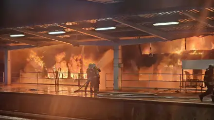 Поезд принадлежит частной компании. На месте работают пожарные, на станции также находится полиция.