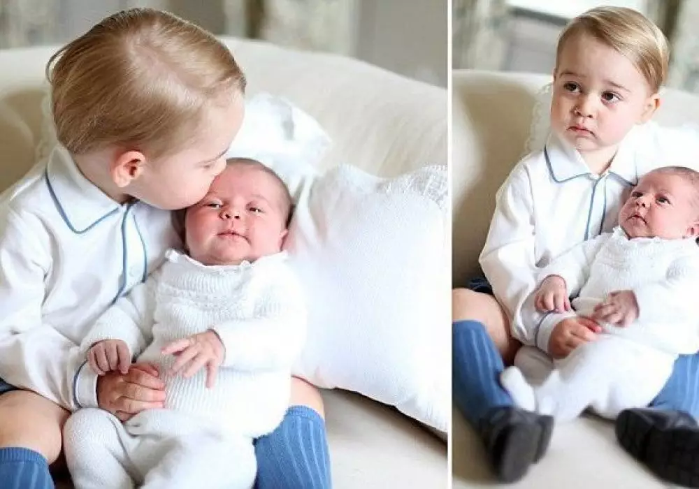На снимках, сделанных фотоаппаратом Canon EOS 5D Mark II в загородном доме четы в Норфолке, двухнедельная принцесса Шарлотта запечатлена вместе со своим двухлетним братом - принцем Джорджем.