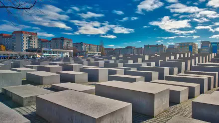 Мемориал жертвам Холокоста расположен в Берлине и был установлен в память о евреях - жертвах нацизма. Представляет собой огромное поле из более чем 2 700 серых плит. Проходы между плитами сделаны слишком узкими, для того чтобы идти по ним вдвоем было неудобно, оставшись же в одиночестве, посетитель начинает переживать сложную гамму чувств.